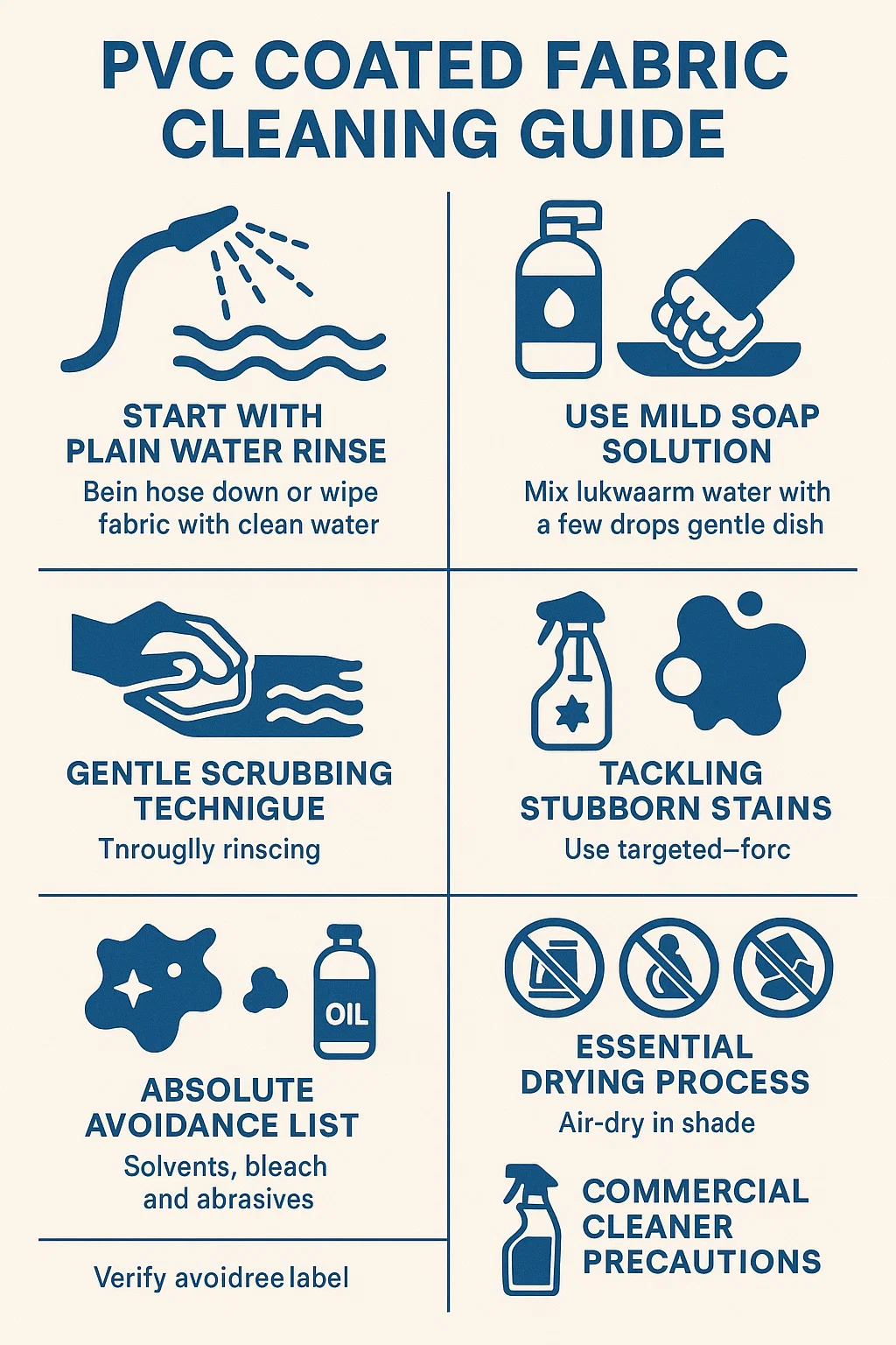 Ecco una guida pratica per la pulizia Tessuti spalmati in PVC sulla base dell'esperienza comune e della cura dei materiali: